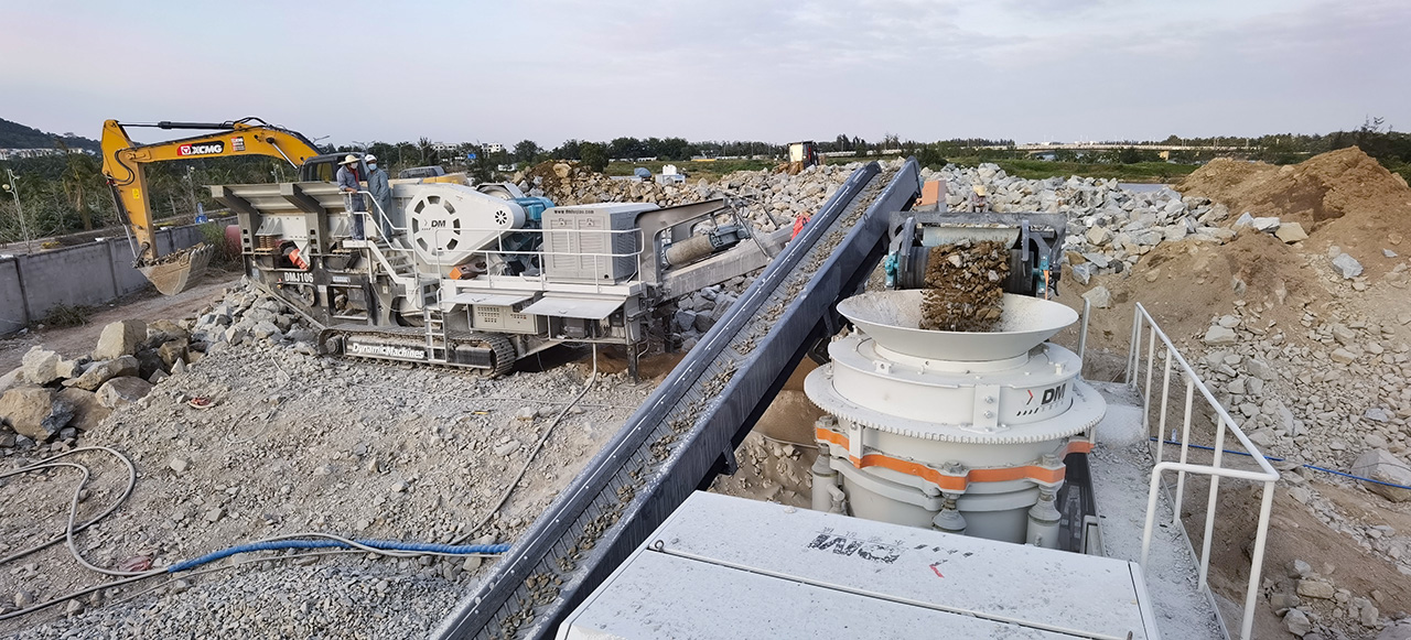 颚破+圆锥破+筛分机是破碎生产线中较为常用的一种配置,适用在硬质物料;产品形状好,易损件后期消耗比较小、产量高。此生产现场,客户选用DMJ履带移动颚破+DMHP履带移动圆锥破+DMS筛分机组成一条完整的生产线,主要应用于石英岩骨料加工;作为专注破碎筛分设备的制造商与砂石骨料解决方案综合服务商,东蒙近年来,不断与各地客户加强战略合作,针对不同的岩石硬度特点及产能需求,成功为多条大型砂石骨料生产线项目提供了多样化方案设计,带动当地砂石行业高质量发展!