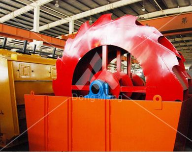 工作时,电机通过三角带、减速机、齿轮减速后带动叶轮缓慢转动,砂石有给料槽进入洗槽中,在叶轮的带动下翻滚,并互相研磨,除去覆盖砂石表面的杂质,同时破坏包覆砂粒的水汽层,以利于脱水;同时加水,形成强大水流,及时将杂质及比重小的异物带走,并从溢出口洗槽排出,完成清洗作用。干净的砂石由叶片带走,最后砂石从旋转的叶轮倒入出料槽,完成砂石的清洗作用.